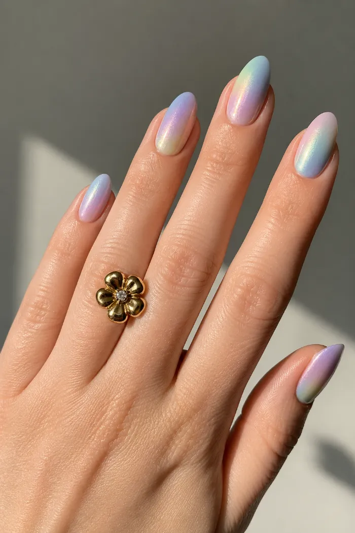 18. Pastel Rainbow Chrome Almond Nails