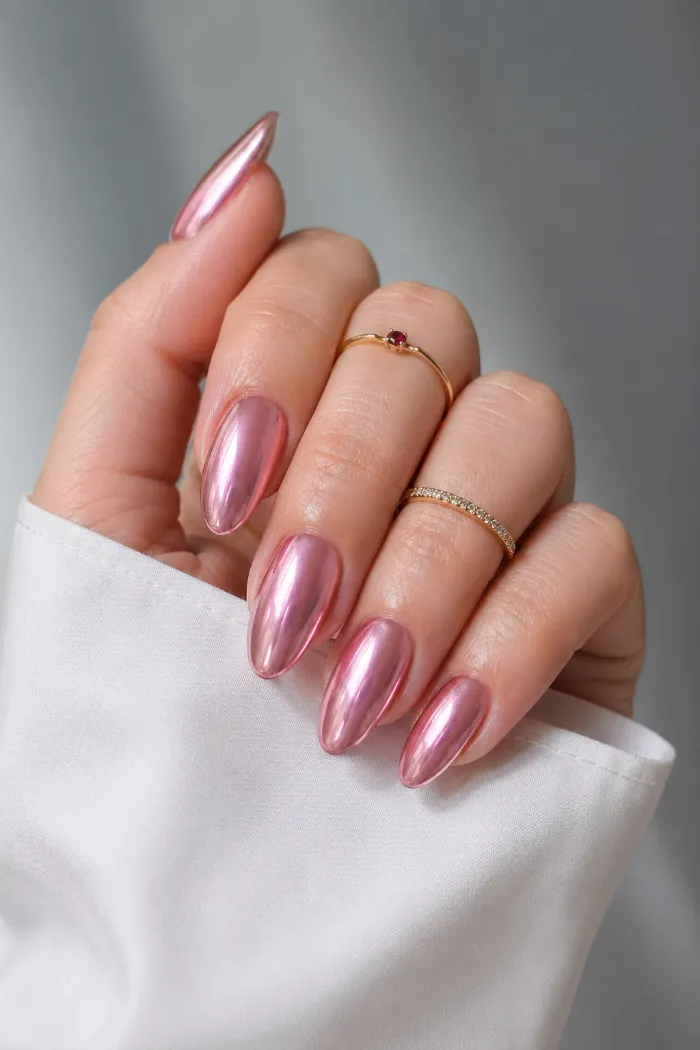 10. Pink Chrome Almond Nails