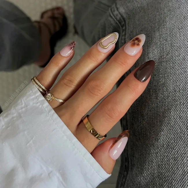 This mani blends earthy tones with delicate design work, giving you a cozy yet stylish vibe.