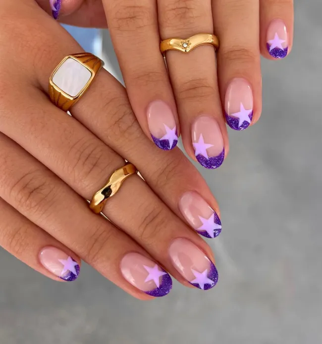 Glittery French tips are always a mood, and this purple version with star cutouts feels magical.