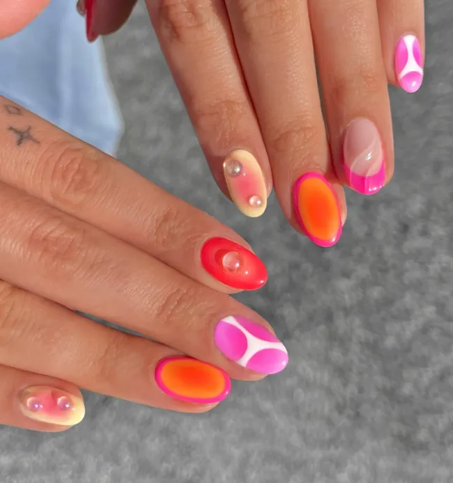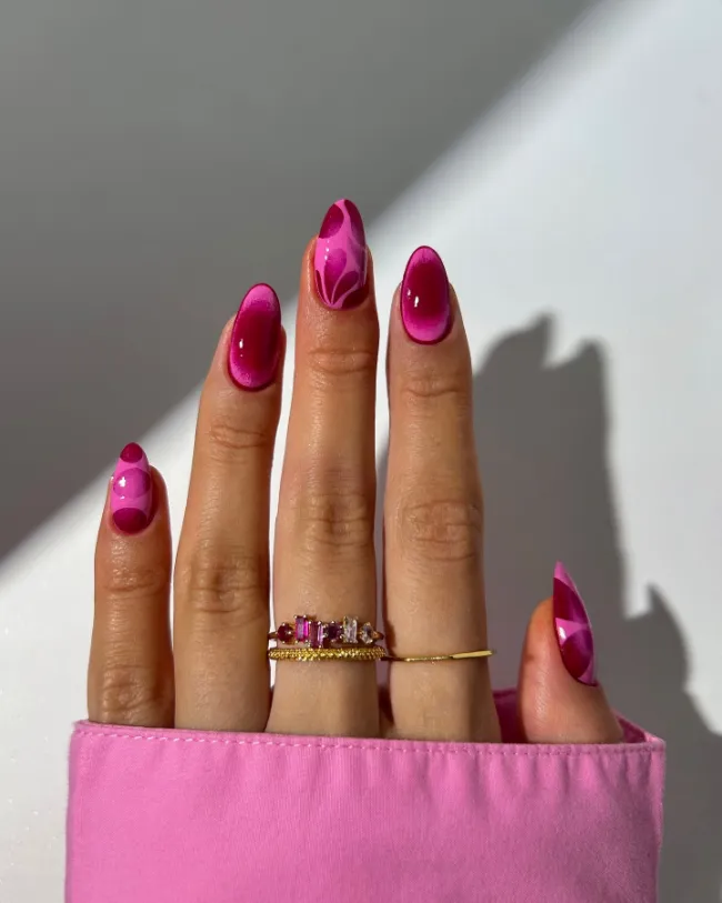 Aura nails are trending hard right now, and this pink gradient version paired with abstract art is just gorgeous.