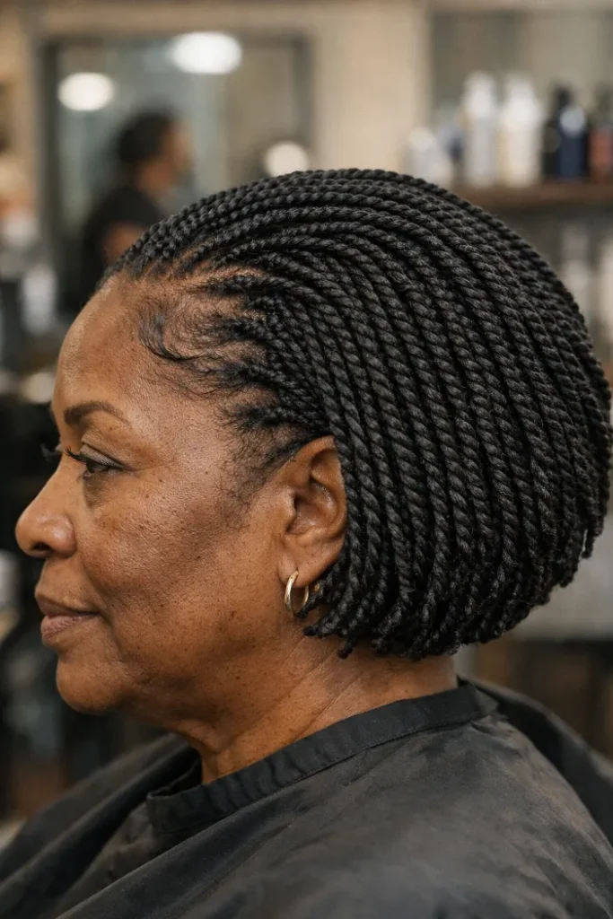 Micro twists cut into a bob shape are protective and still look styled.