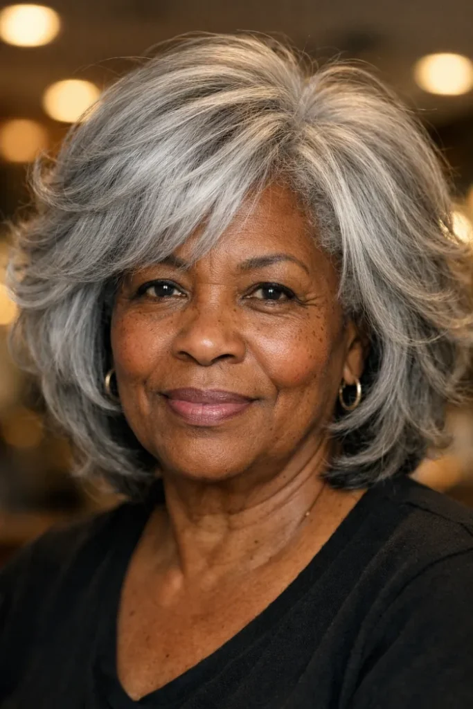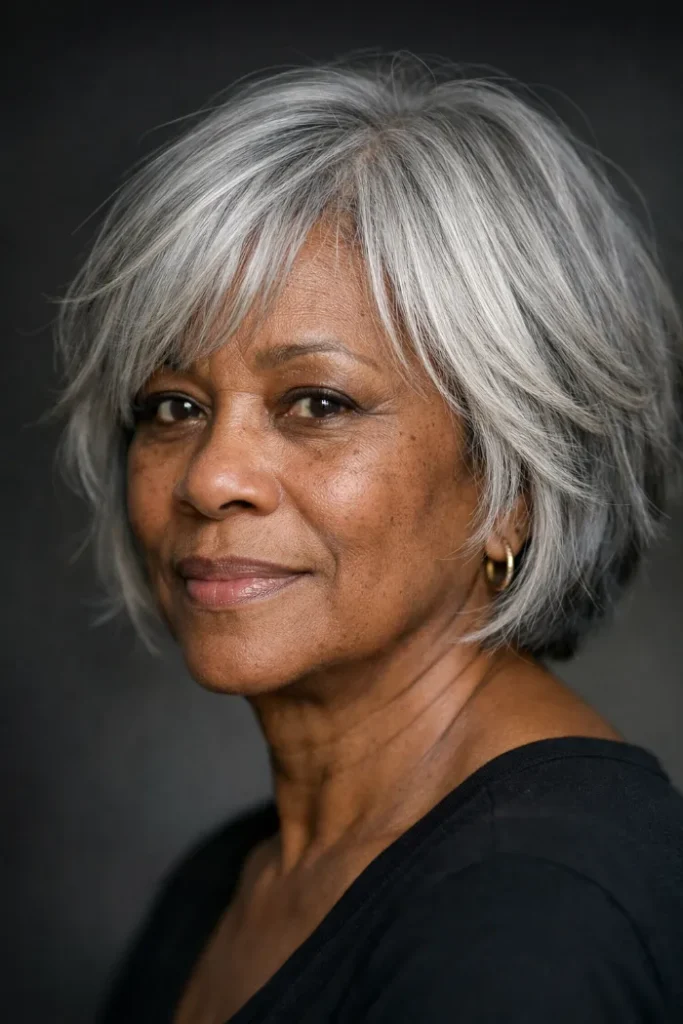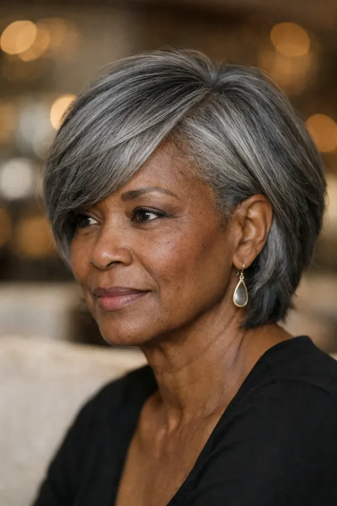 Color matters too. Gray and silver can look bright and expensive when the cut is sharp and the shine is healthy.