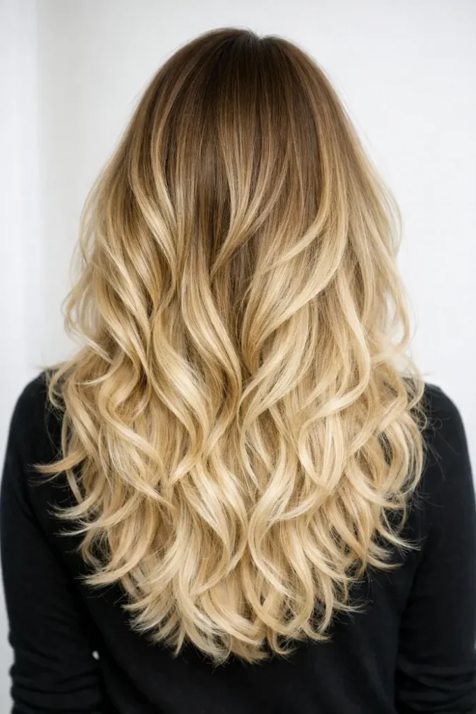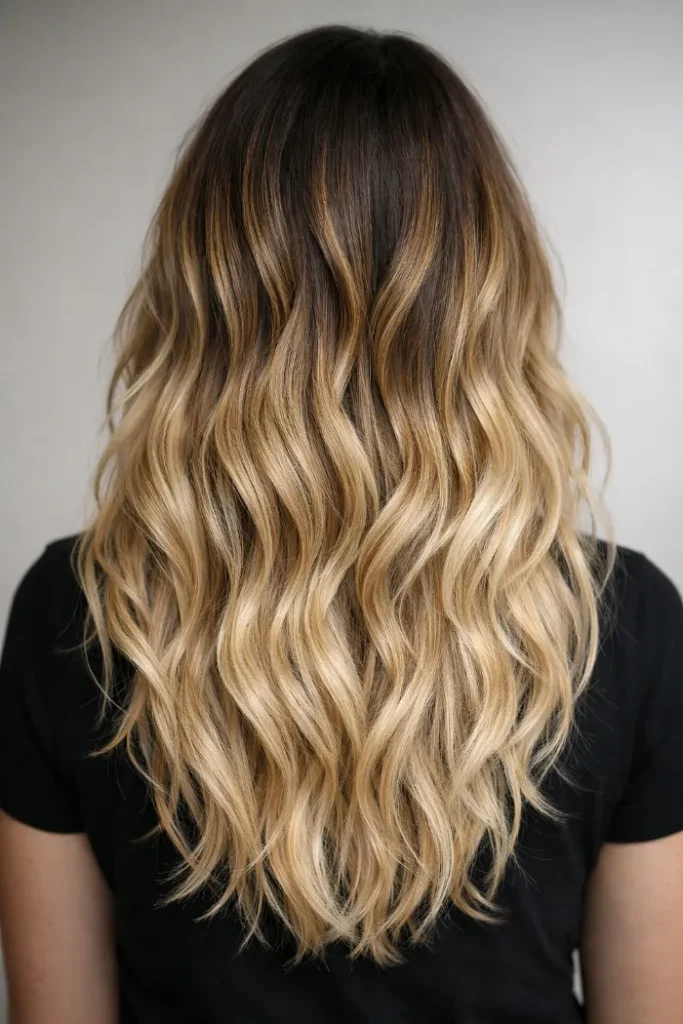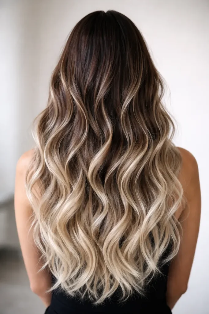 8. Brown to Blonde Balayage with Defined Waves