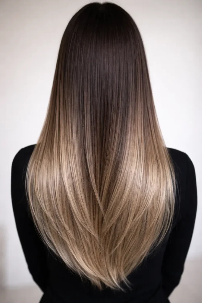 This look leans into a gradual fade, with brown staying dominant through the crown before melting into blonde near the ends.