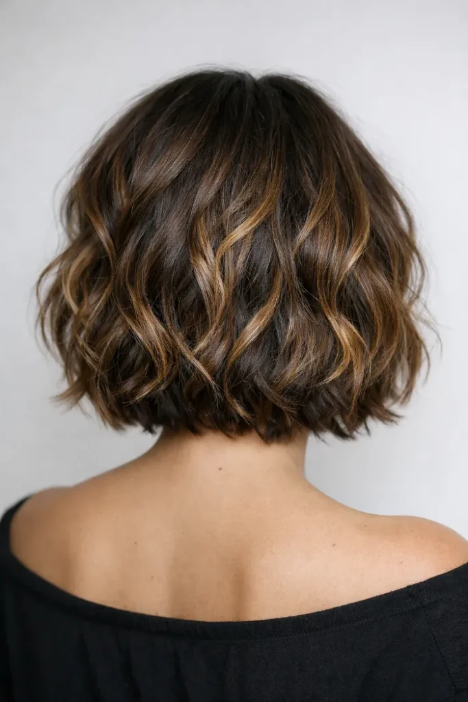 23. Wavy Bob with Subtle Blonde Balayage