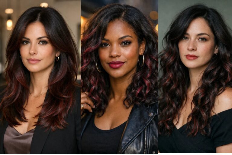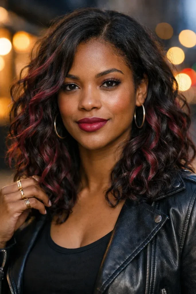 The best part is the grow-out. Because it’s balayage, the roots can stay deeper and softer, so you are not chasing touch-ups every few weeks. You can go subtle with barely-there warmth, or push it brighter with burgundy and magenta ribbons.