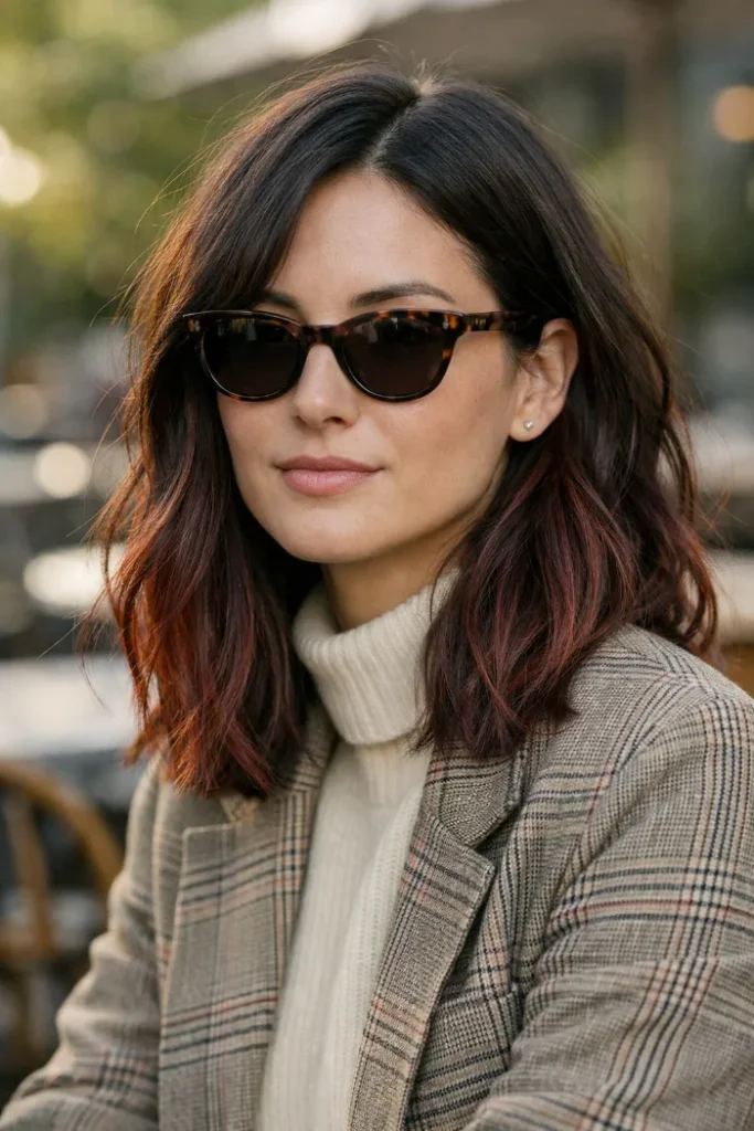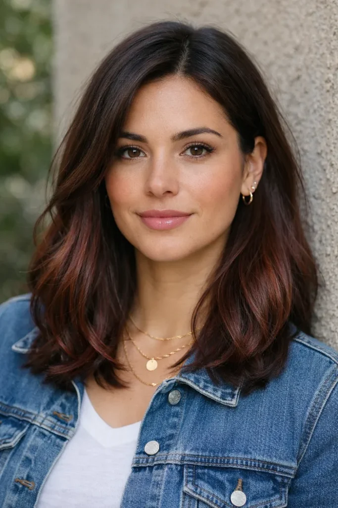Cherry cola balayage is one of those colors that works year-round. It gives you depth like a brunette, but still feels fun when the red catches the light. If you want the easiest upkeep, choose a darker base with the color focused on the mid-lengths and ends.