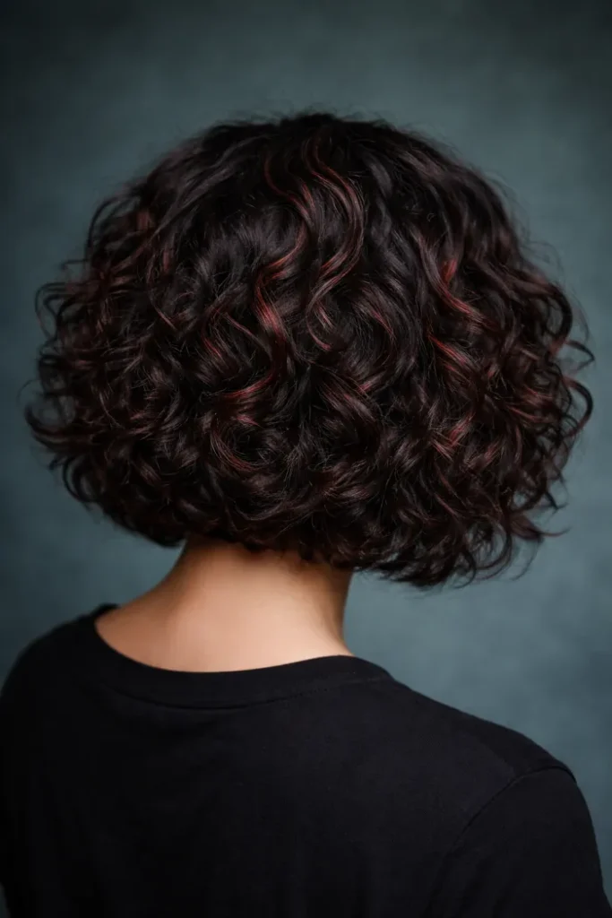 13. Curly Bob With Cherry Cola Threading