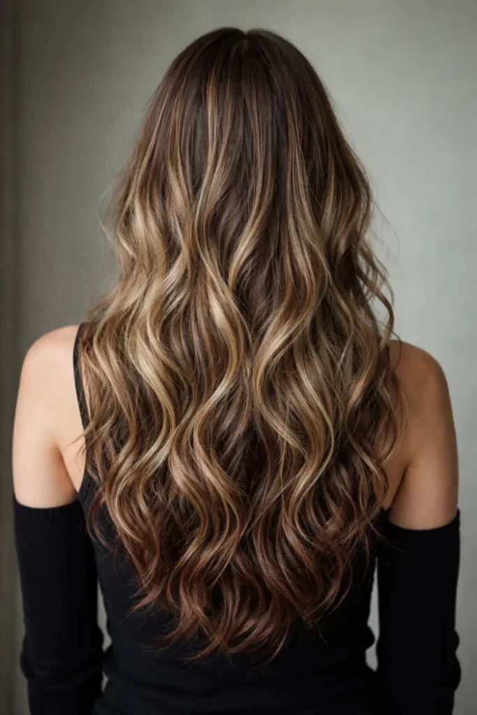 This ash-beige balayage is light but still wearable because the root stays deeper. It gives a clean, blended look that works with long waves. If you fade warm fast, ask for a cooler toner. Use purple shampoo lightly, not every wash.
