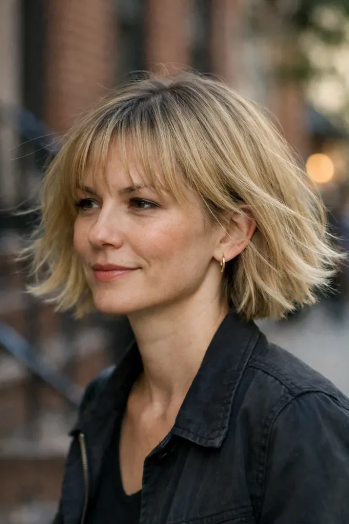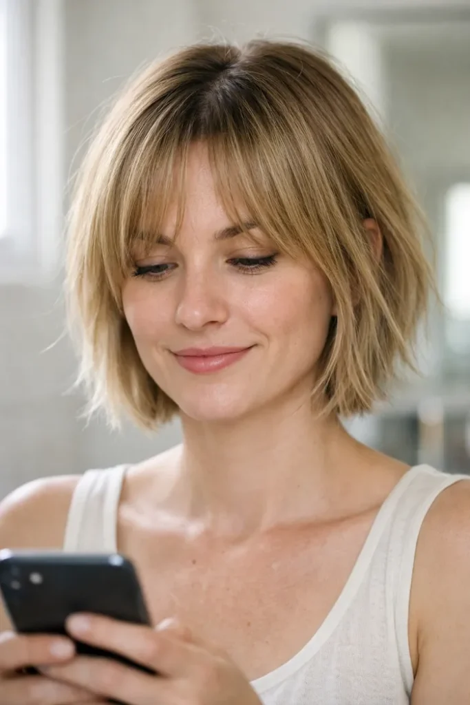 Choppy bobs with bangs can make fine hair look fuller fast. You get shape around the face, movement through the ends, and a fringe that softens features without weighing everything down.