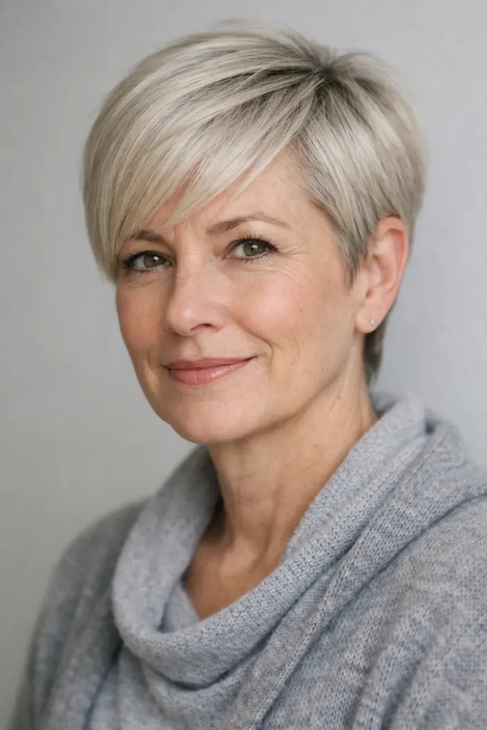 8. Side-Swept Platinum Pixie with Soft Undercut