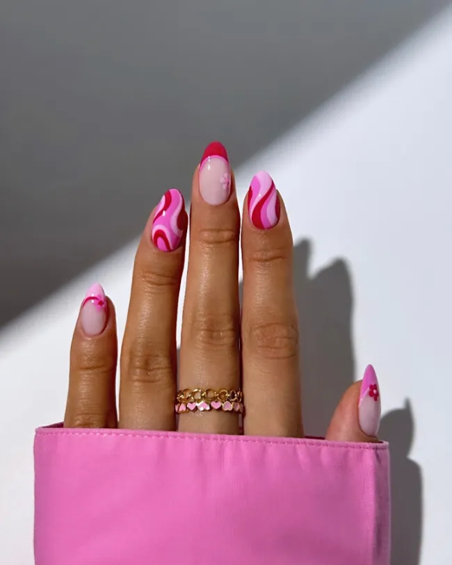 Pink swirls are the ultimate mix of feminine charm and classy elegance. With its soft yet playful design, this look is perfect for fall when you want nails that feel trendy but not over-the-top. It’s chic, stylish, and versatile enough to complement a wide range of outfits.