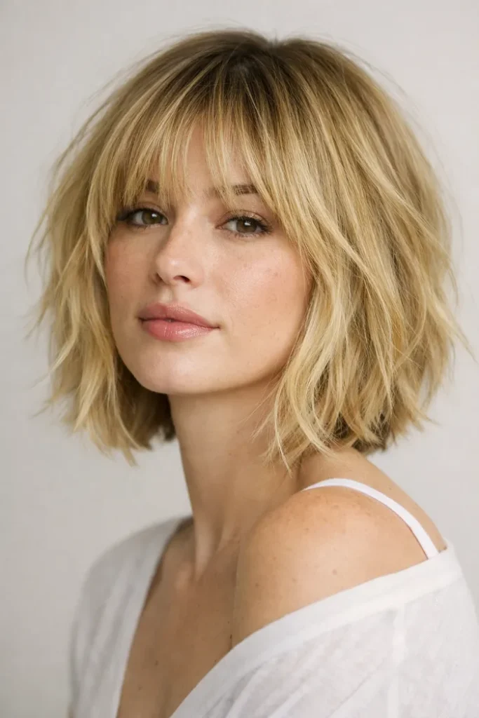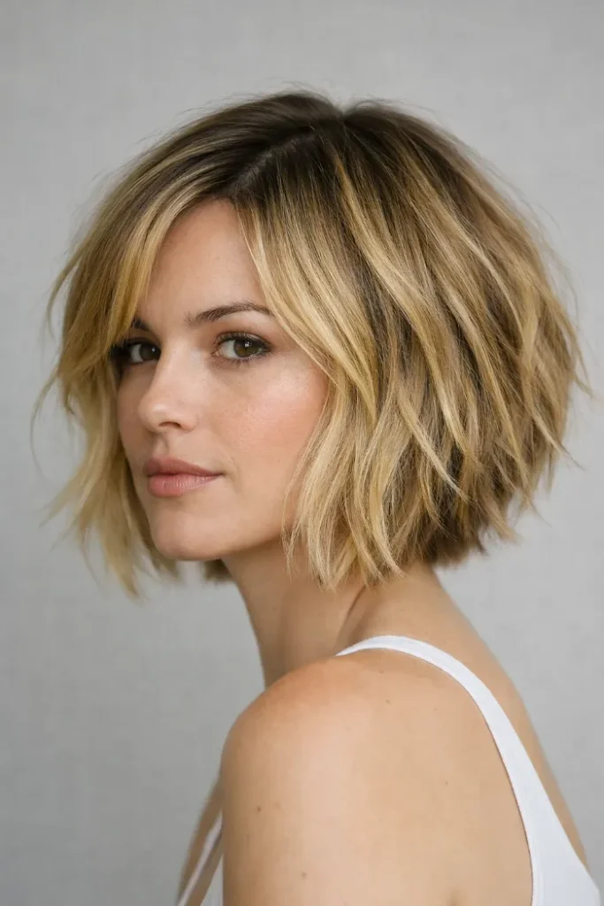 The tousled finish is what makes this bob feel modern—soft, slightly undone, and easy.