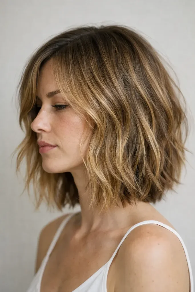 The lighter tones emphasize the layers, giving the haircut more depth and shape. It’s a great option if you like styles that look better with minimal styling.