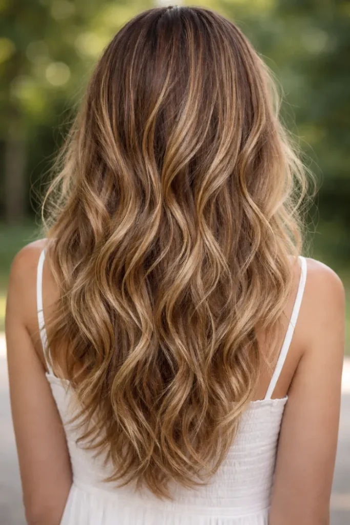 2. Sun-Kissed Balayage on Long Waves