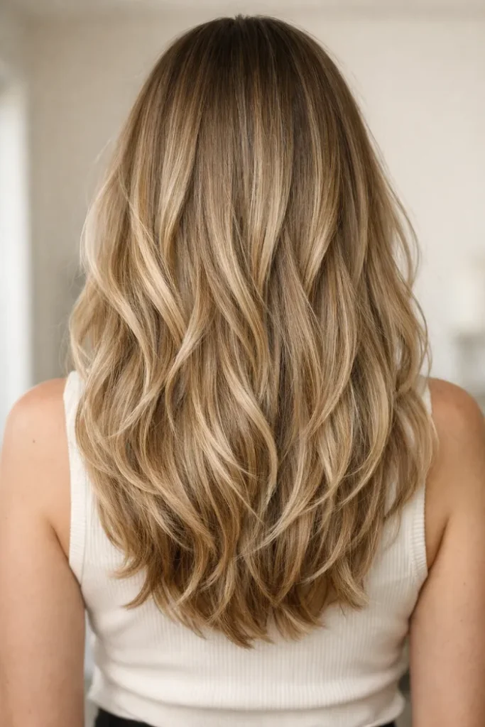 13. Soft Bronde Balayage on Long Layers