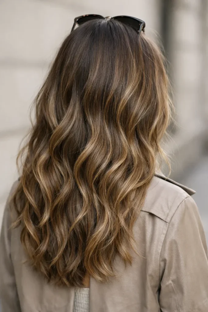 If warm tones turn brassy on you, this cool-neutral mushroom bronde is your friend. The blonde balayage leans smoky and beige, not yellow, and it looks gorgeous in waves. Ask for an ash-beige toner and a soft root melt for easy grow out.