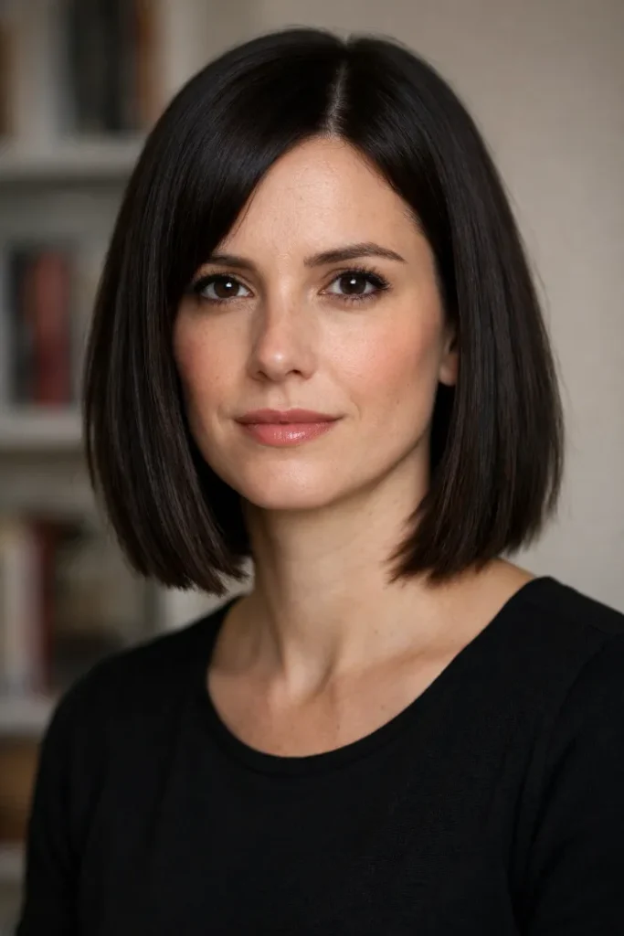 Ask for a blunt-looking lob that hits around the collarbone or just above, with hidden weight removal underneath. Keep the outer line crisp and neat, but have the interior softened so the hair lies closer and feels easier to manage.