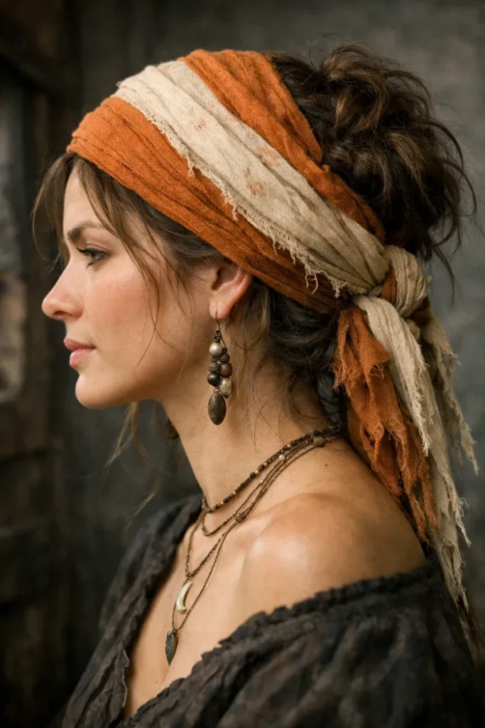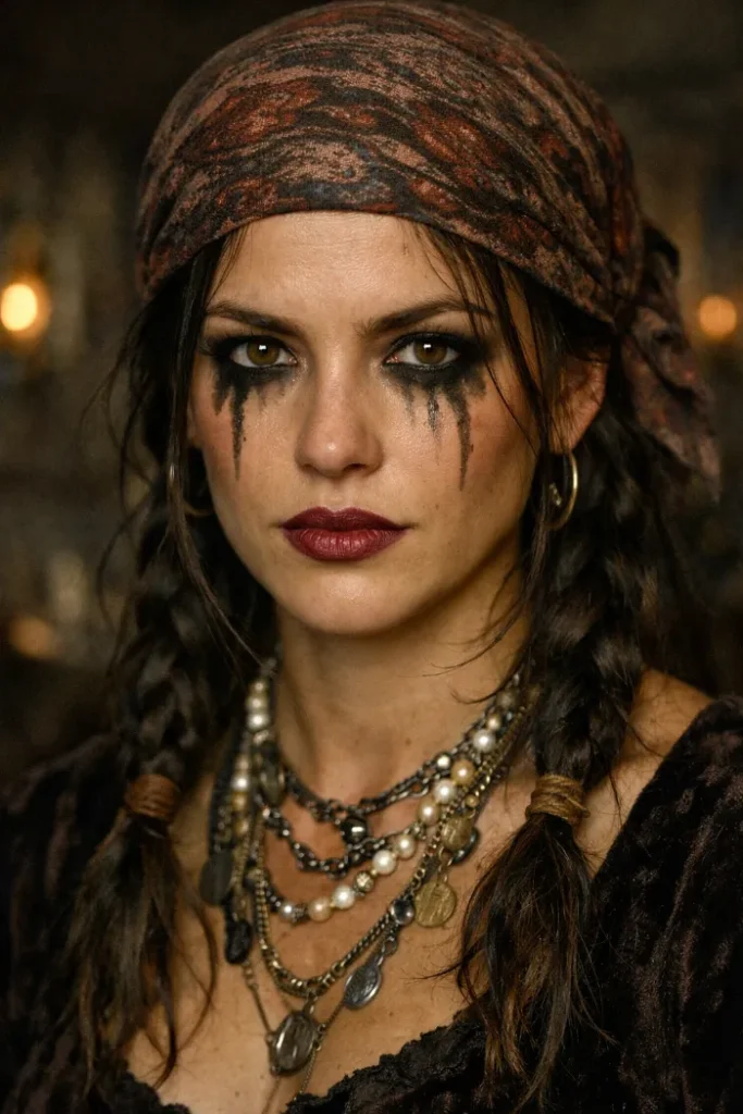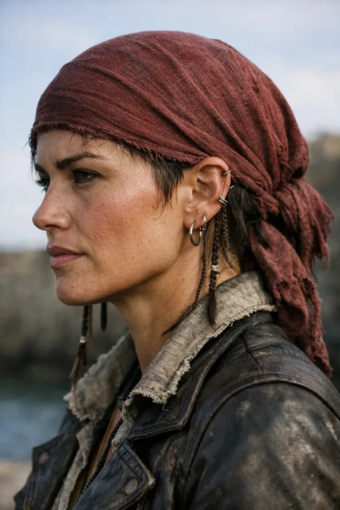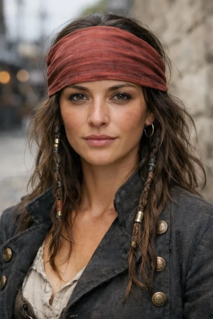 If you’re trying to keep it simple, start with a scarf or bandana and build from there. It frames the face, hides a rough hair day, and instantly gives that pirate feel. Add a loose braid or a low ponytail and you’re basically done.