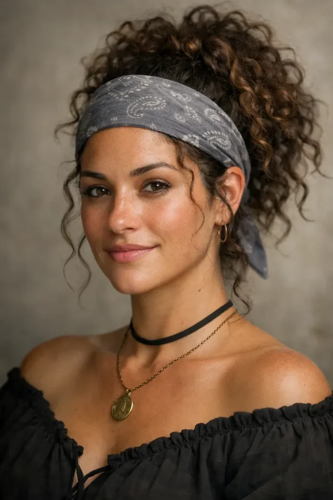 33. Bandana Curly Ponytail