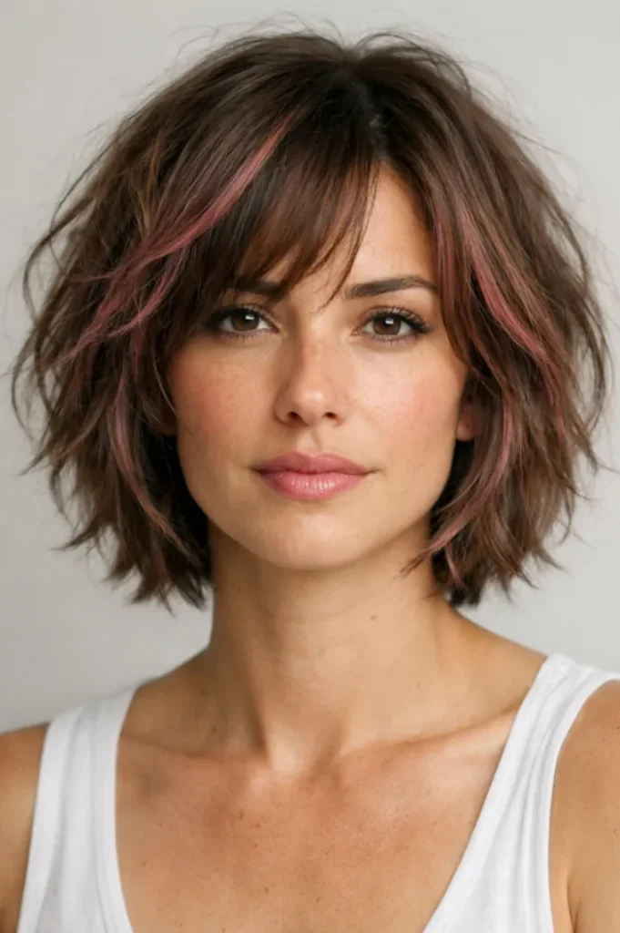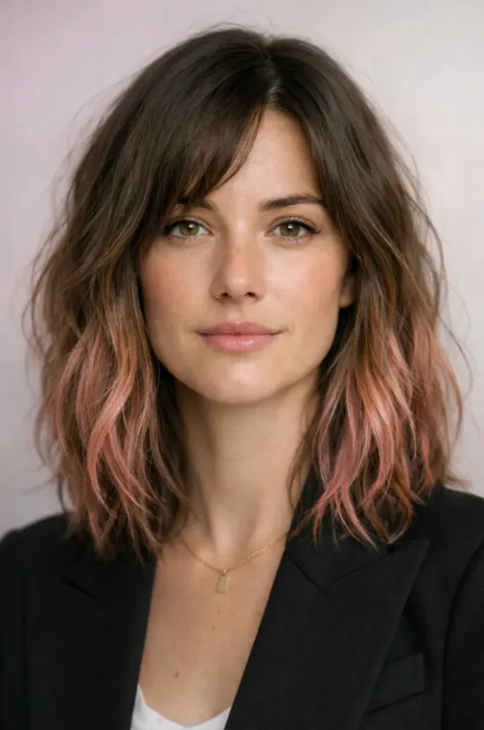 Pink highlights in brown hair do not need to follow one formula. What makes them feel right is how naturally they fit into the rest of the look. Sometimes that means barely noticeable strands that add depth. Other times, it is color concentrated at the ends or through the front that changes the mood of the cut.