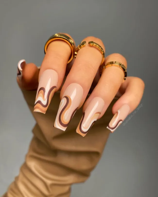If you love cozy tones but crave something artistic, these abstract brown and white swirls are your fall dream come true.
