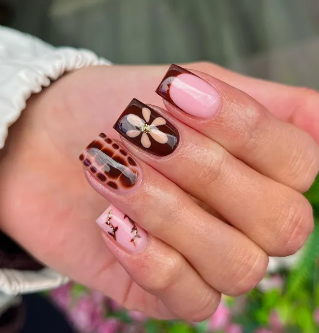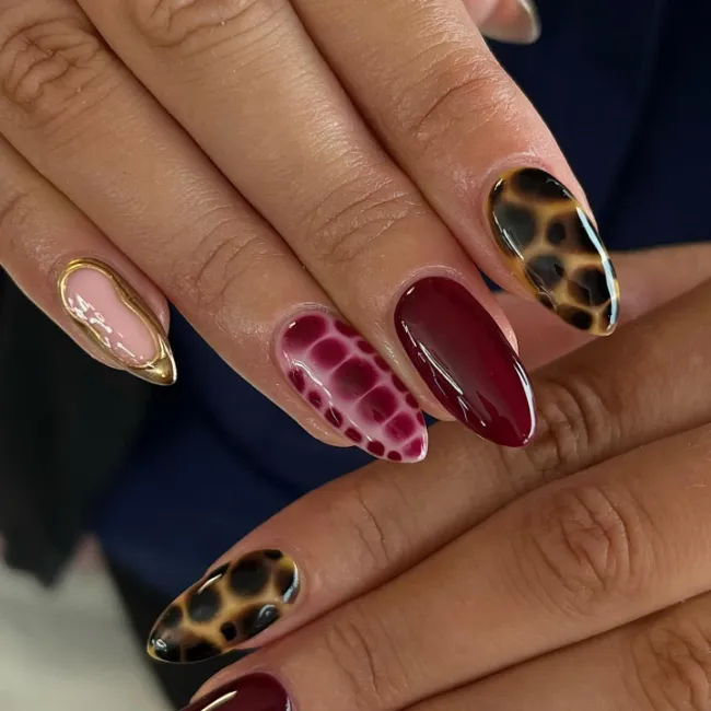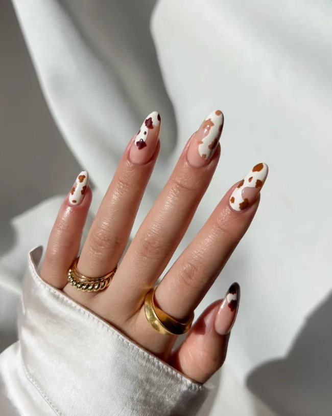This cow print set gets a cozy fall twist with rich, earthy tones like mocha, taupe, and caramel. It’s the ultimate cool-girl nail look—bold yet totally wearable.