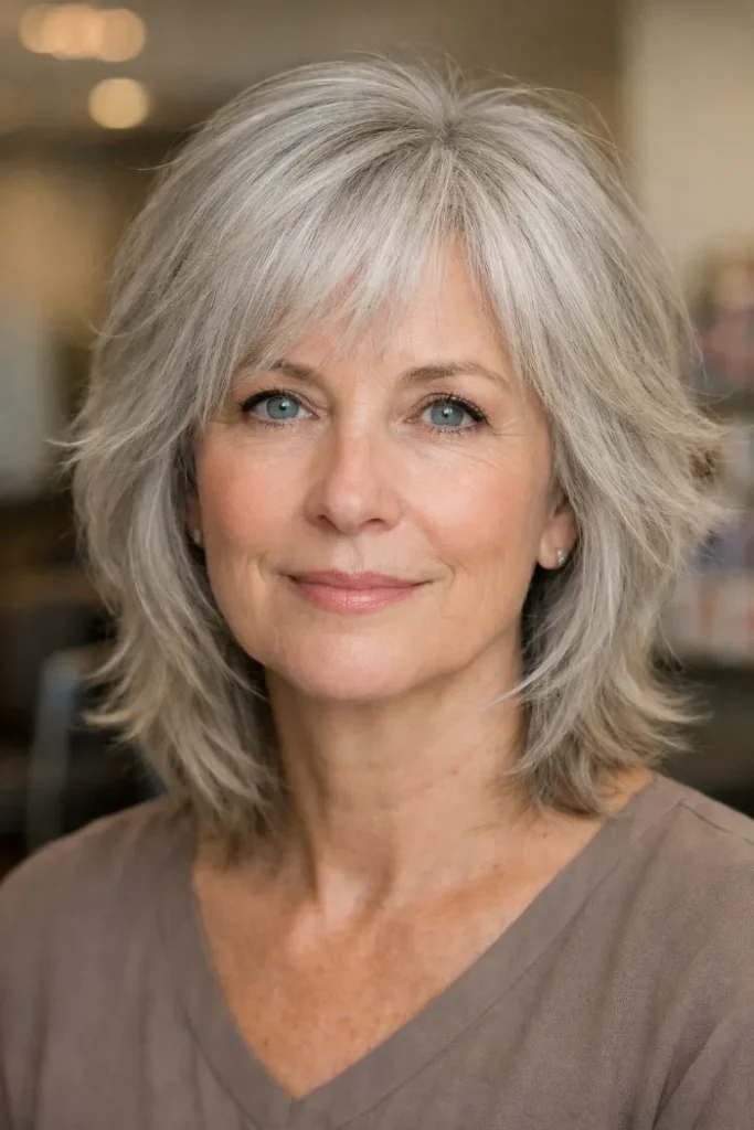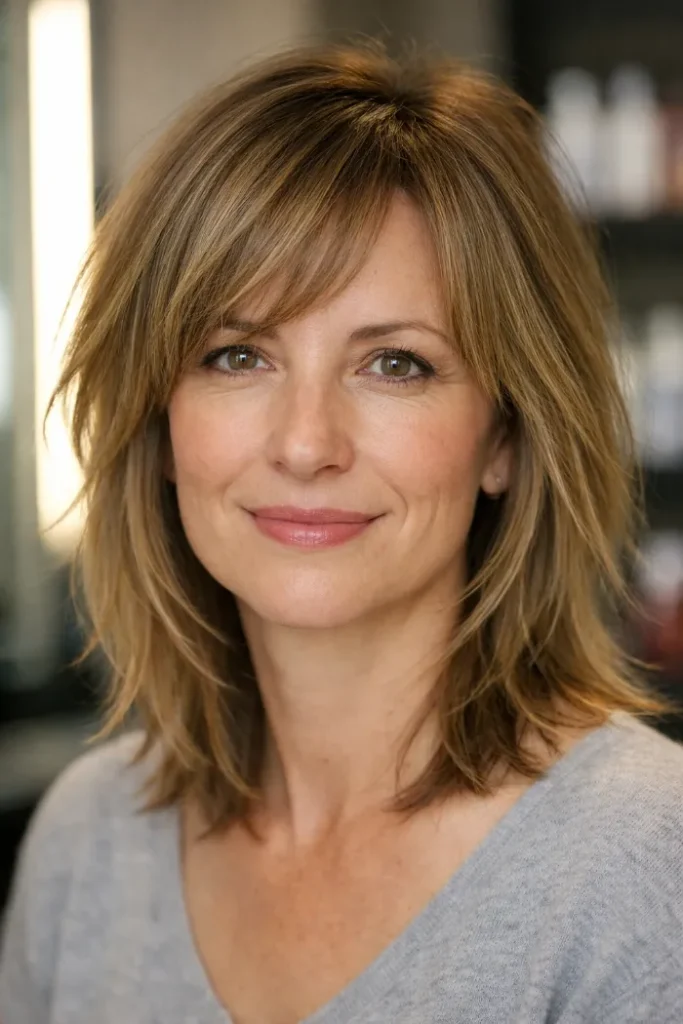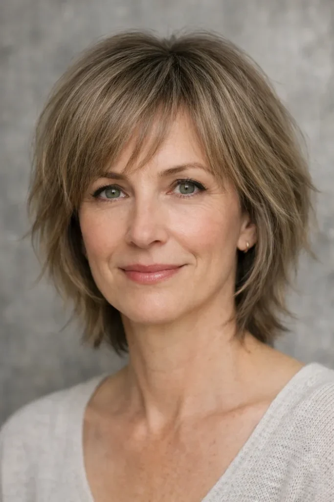This one puts more texture at the crown, which helps medium-length fine hair look fuller where it usually falls flat. The shape feels lively without looking messy.