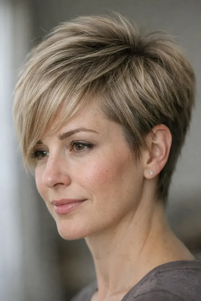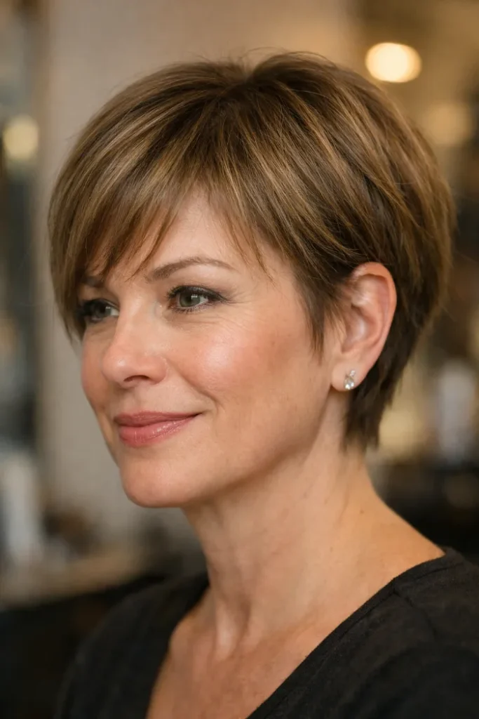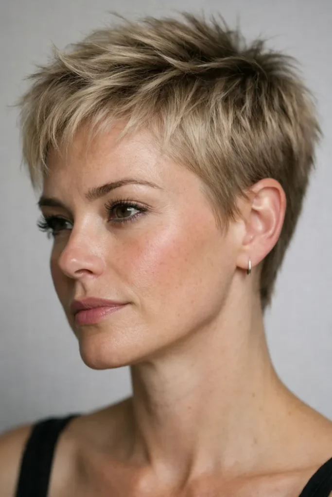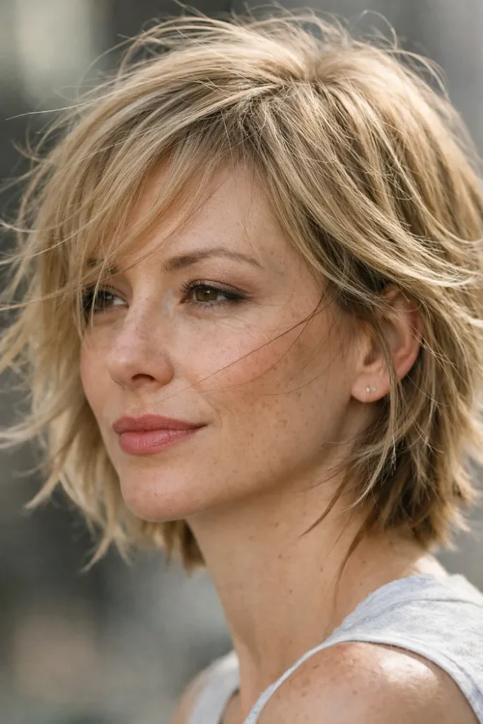 If you want the easiest option, go for a blunt bob or a pixie with a little texture on top. If you like softness, try a bob with curtain bangs or a gentle shag that adds movement. And if you’re feeling bold, a buzz cut or undercut can look unbelievably clean and confident.