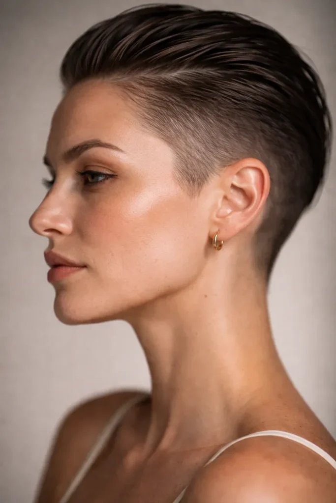 An undercut pixie with a textured top is perfect if you want a lightweight cut that still looks full up top. The short sides keep everything clean, while the crown has lift and grit. Add a matte paste and rake it back, then pinch the ends.