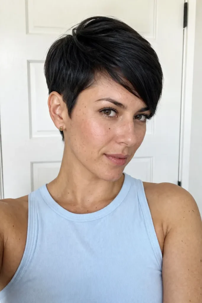 10. Sleek Dark Pixie with Side-Swept Top