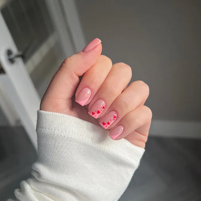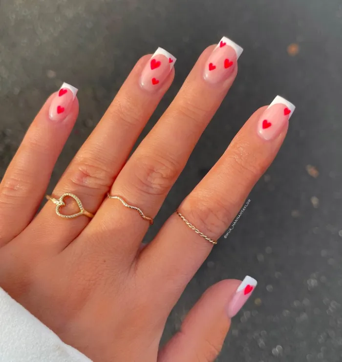White tips meet mini scarlet hearts for a Valentine French that feels clean, cute, and timeless. It’s the perfect choice if you love neutrals but still want a little wink of romance. Dress it up with gold jewelry or keep it casual with denim—either way, it’s chic from every angle.