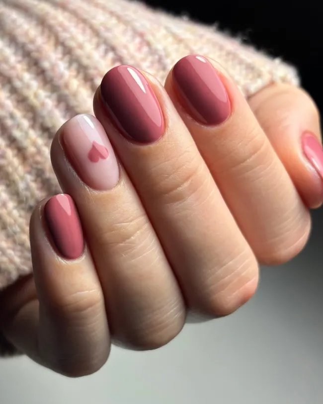 A rosy ombré palette glides across the hand, grounded by one soft heart on a neutral base. It’s subtle, cozy, and incredibly flattering—like your favorite knit in nail form. If you want seasonal without going full theme, this is the chic, grown-up Valentine look you’ll wear past the 14th.